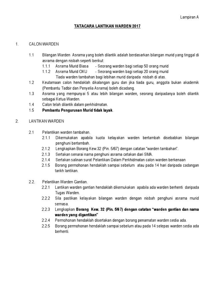 Tatacara Lantikan Warden 2017 Lampiran A Pdf